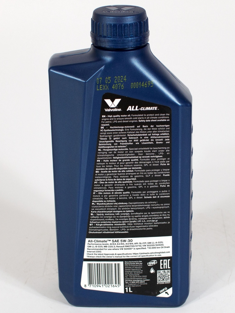 Главная / Моторные масла / Моторное масло Valvoline All Climate 5W-30, 1л