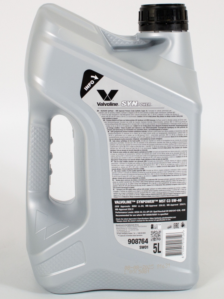 Главная / Моторные масла / Моторное масло Valvoline SYNPOWER MST C3 5W-40, 5л